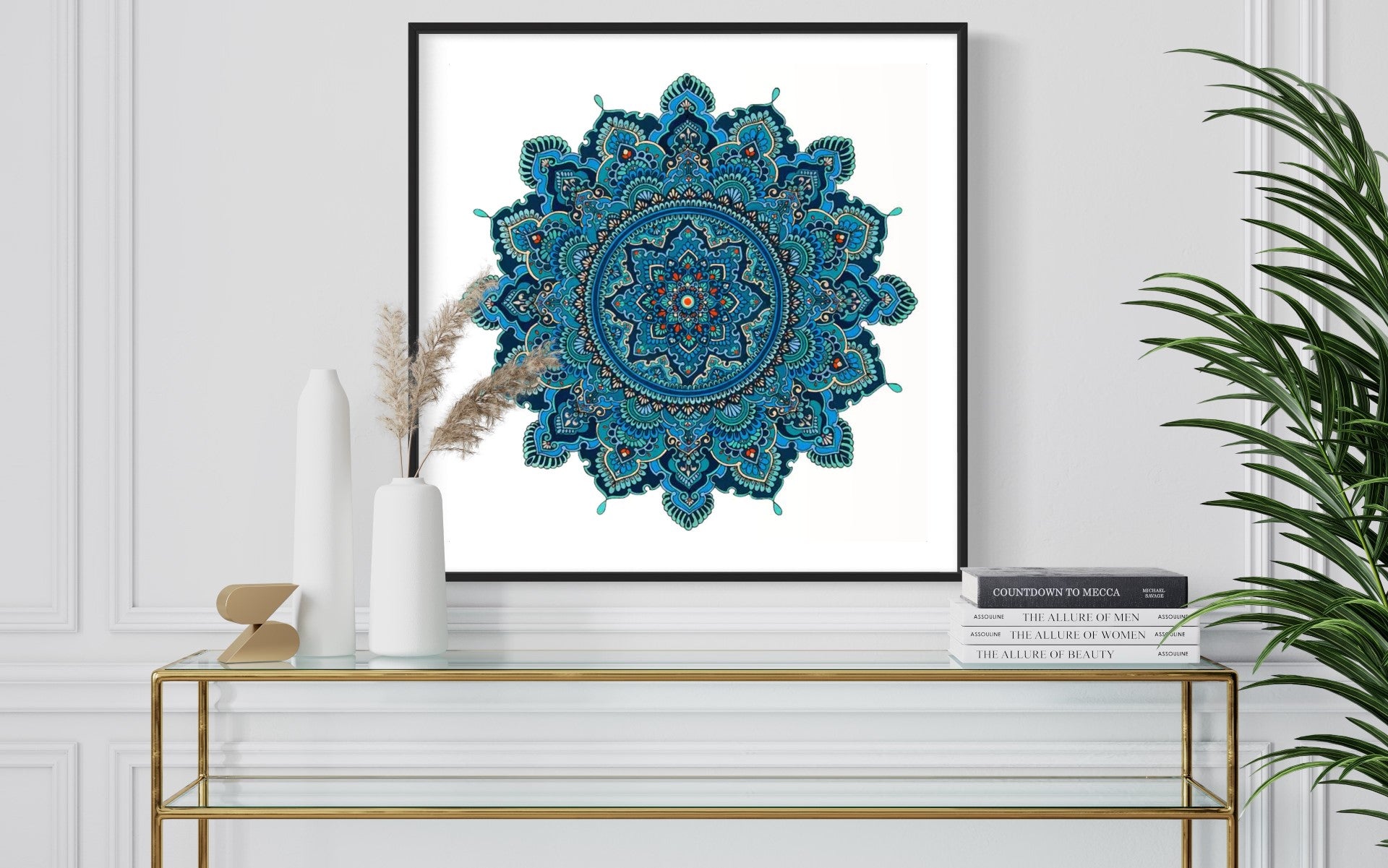 Entering 2023, I created this mandala to represent the beginning of a new year with fresh goals to achieve. I choose blue as the predominant color to express the freedom to reach new potential, being full of inspiration and following my intuition where it brings me. I decided to add a balanced touch of orange to bring even more positivity and energy to the piece.